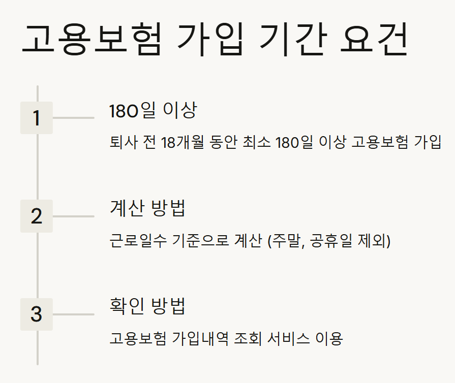 - 실업급여를 받으려면 퇴사 전 18개월(1년 6개월) 동안 180일 이상 고용보험에 가입되어 있어야 합니다.