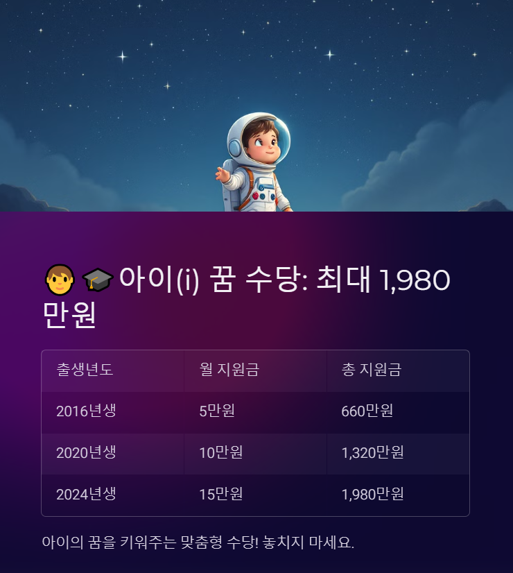 🔹 아이 꿈 수당 (660~1,320만 원)