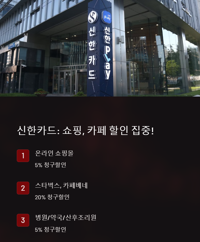 🔹 신한카드 → 외식과 쇼핑을 자주 한다면 신한카드가 혜택이 많아요!