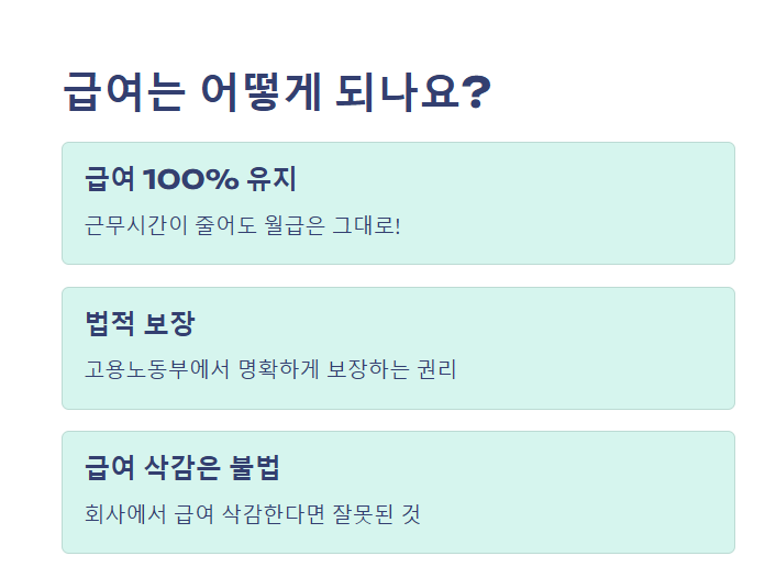 걱정 마세요! 근무 시간이 줄어도 급여는 100% 그대로 지급됩니다.