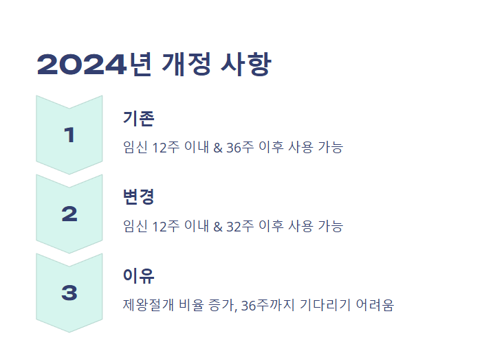 기존엔 임신 12주 이내 & 36주 이후만 가능했는데, 2024년 7월부터 32주 이후로 변경돼요.