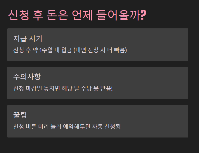 ✔ 신청 후 한 달 내로 심사가 끝나고 수당 지급이 시작된다
