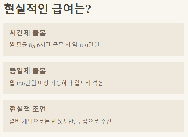 ❌ 종일제 일자리는 많지 않아, 시간제 위주로 해야 수입이 안정적