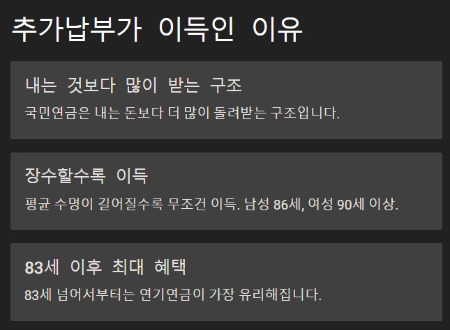 여유가 되신다면 국민연금 추가납부는 한번 진지하게 고려해볼 만해요.