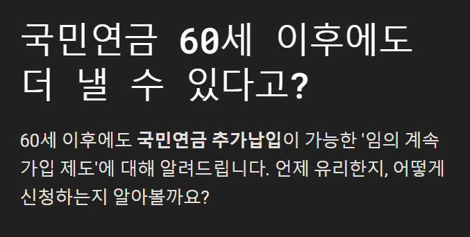 그런데 조금 더 알아보니까 60세 이후에도 국민연금 추가납입을 할 수 있는 방법이 있더라고요.