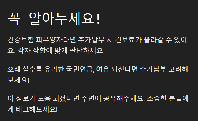 건보료 부담이 생기면 추가납부가 오히려 손해일 수도 있어요.