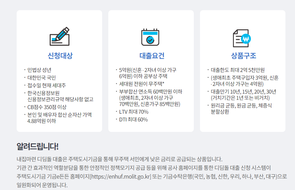 지금부터 디딤돌 대출 조건, 한도, 금리, 신청 방법 등을 차근차근 살펴보겠습니다.