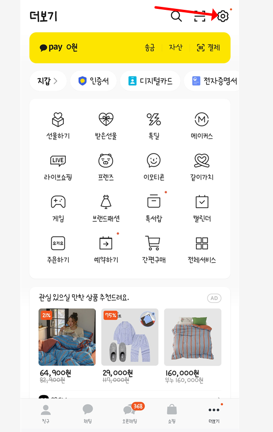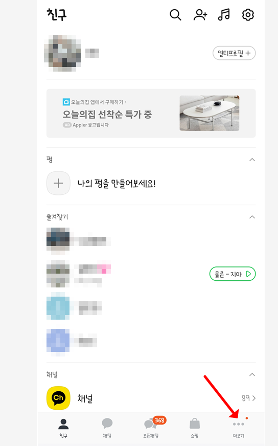 - 카카오톡 실행 → 하단 ‘더보기(⋮)’ 클릭