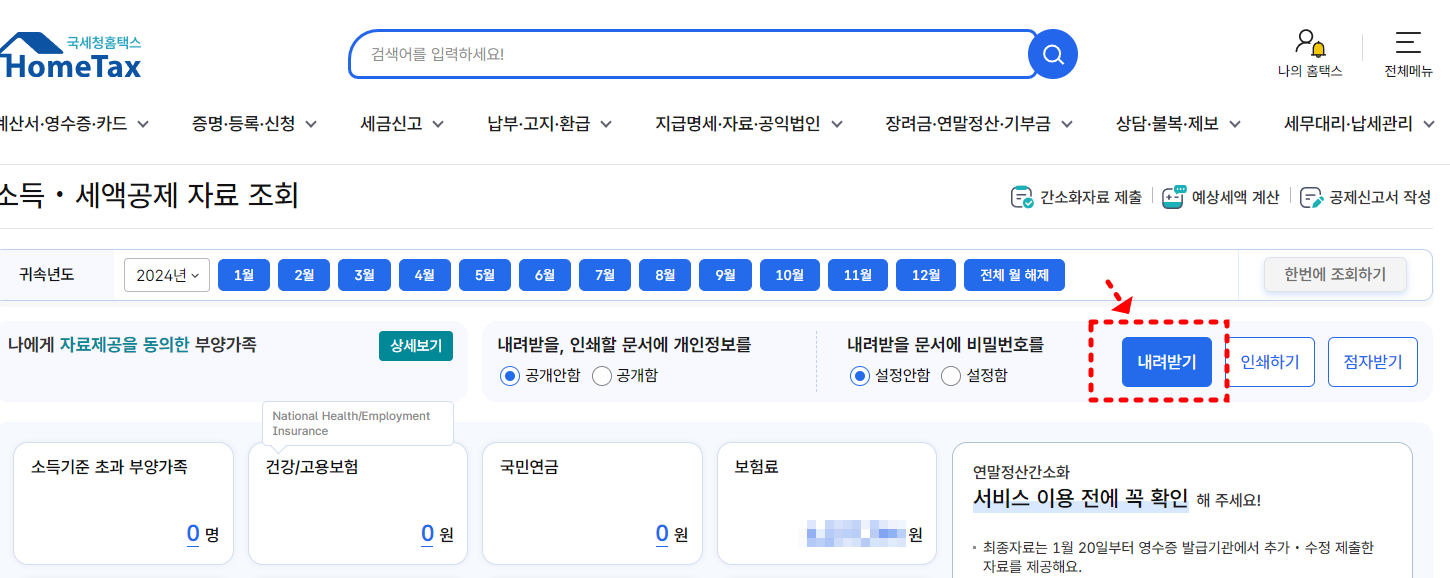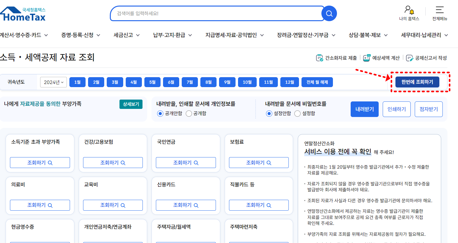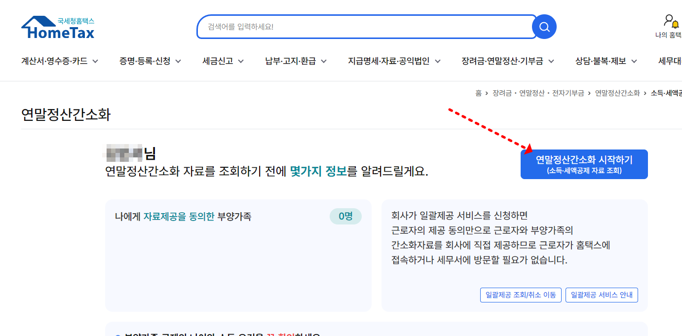 부양가족 등록이 완료되었다면, 이제 연말정산 간소화 자료를 조회할 차례입니다.