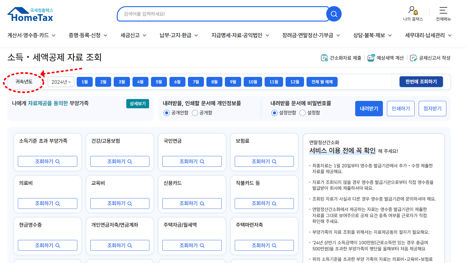 홈택스를 이용하면 연말정산 자료를 한 번에 조회하고, 간편하게 제출할 수 있습니다.