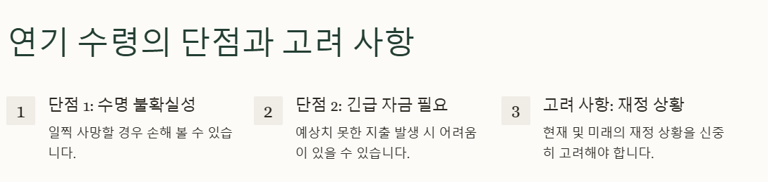 반대로, 국민연금 연기 수령이 불리한 경우도 있습니다.